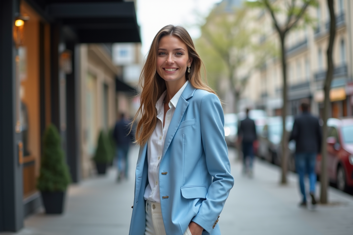Pour intégrer cette couleur tendance, tout est affaire de contraste. Une jupe bleu nuit, associée à une chemise blanche, dessine un look graphique sans effort. Un top bleu ciel sous un blazer crème et voilà un souffle de fraîcheur, même quand l’automne s’installe. Les accessoires jouent la carte de la couleur : sacs, sneakers, lunettes teintées, tout est permis, pourvu que le choix soit franc.